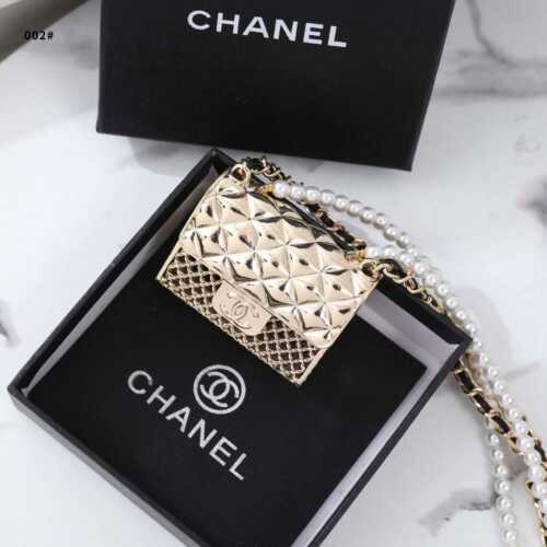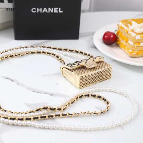 Accesories 002 Long Necklace, Metal Lambskin & Glass Pearls
