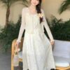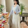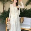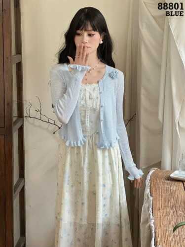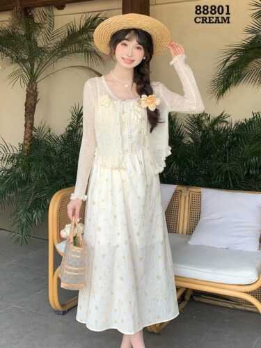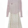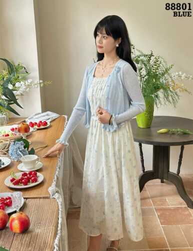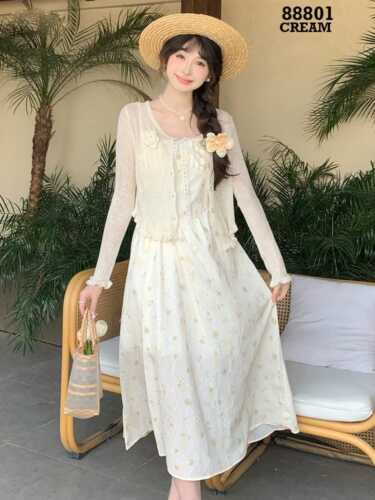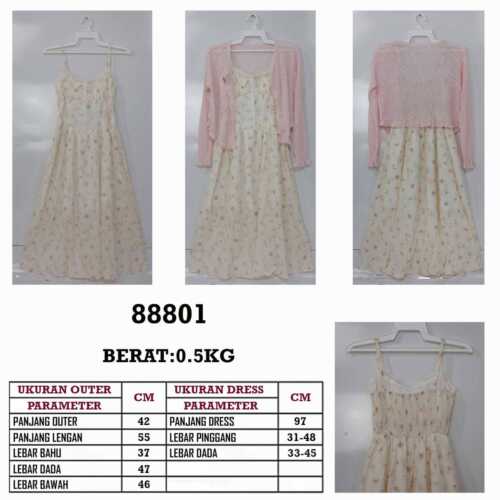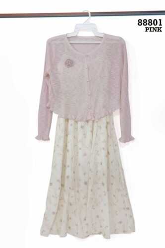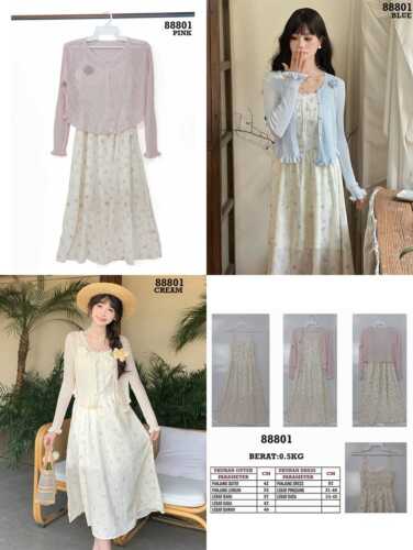 DRESS FLOW 1 TALI + OUTER RAJUT KANCING MUTIARA +BROS RAJUT FLOWER 88801